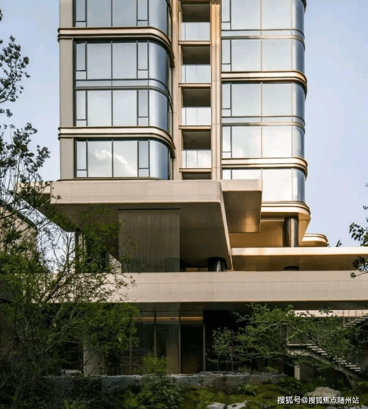 比如“原生围合社区”、风雨连廊,从高奢酒店中获得灵感的酒店式落客区、度假风园林,以及千万级住宅中都不多见的下沉式会所!