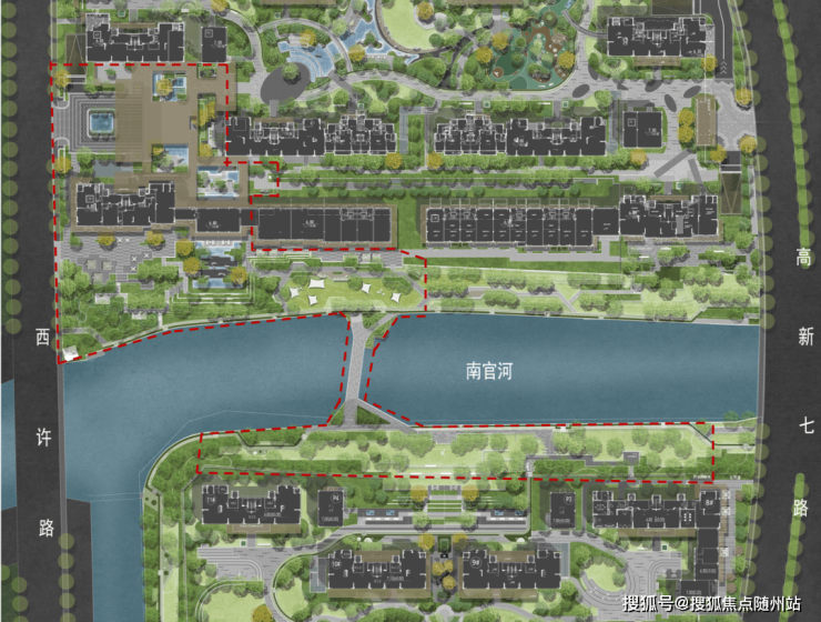 以“借地于城,还地予城”的设计理念,项目通过“以地换景”,将地块之间的萧绍运河支流两岸打造成融合休憩、活动、趣玩的大型滨河景观带,这也是项目规划设计的最大亮点。