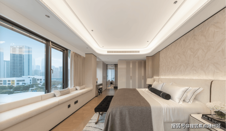 主卧配备270°全景飘窗,躺在床上便能尽览奥体美景。配备5件套全明卫浴;3个卫生间均全明,优于市面普遍有暗卫的设计。