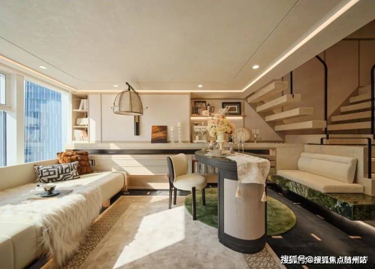 沿悬浮楼梯拾级而上,则抵达完全私密的 「双雅憩空间」。这里是与自我深度对话的领地,是安放热忱与灵感的阁楼。一面是沉浸式的「松弛空间」,另一面是功能完备的休憩领域,可开可合。巨大的玻璃幕墙,如同永不落幕的IMAX巨幕,将钱塘江的潮汐、奥体璀璨的天际线,实时放映为专属于你的城市电影。景致随心境流转,于此,静谧与辽阔达成美妙的共生。