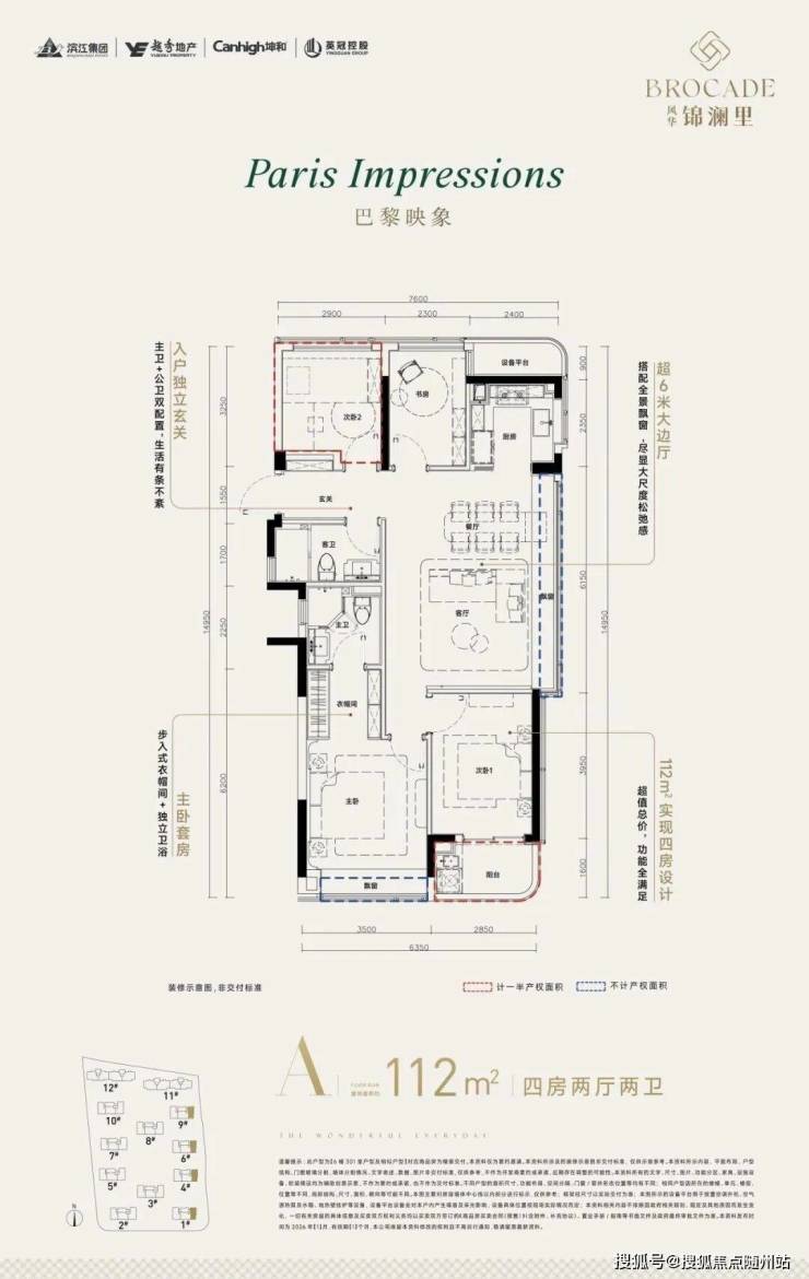 预计首开户型为高层112、123、139㎡户型,2梯3户,整体得房率约90-92%。❶高层建筑面积约139㎡户型,4房2厅2卫,含赠送得房率约92%。
