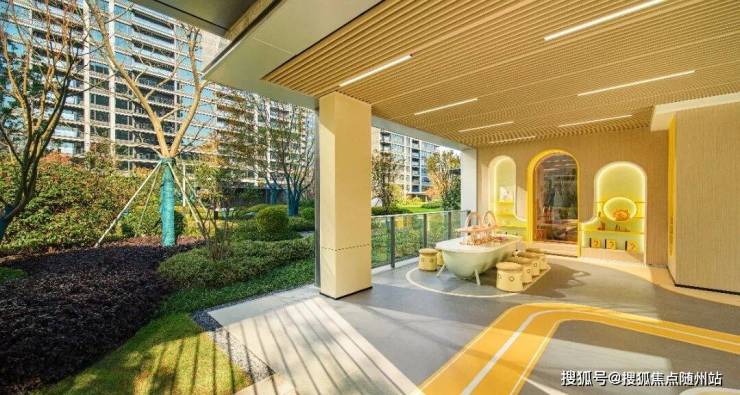 功能化架空层设计。小区设置四大架空层空间,分别是潮映会客厅、奇妙空间、红叶空间、U-YOUNG空间。这些架空层内配置书吧、健身区、儿童乐园等设施,满足不同年龄段人群的需求,实现“出则繁华,入则静谧”的居住氛围。