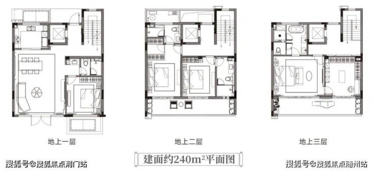 建面约240㎡的中间套,同样是大四房格局,二三楼都有宽约8.9米的跑道式阳台,四季美景循环播放。