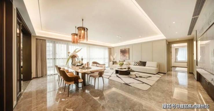 项目利用飘窗、设备平台、封闭阳台等计算规则调整,大大提高了实际使用空间。139㎡户型餐客厅采用LDKB一体化设计,连通封闭阳台形成约55㎡的“无界方厅”,空间感强,功能灵活。这种设计让有限面积发挥出更大效用,提升居住舒适度。