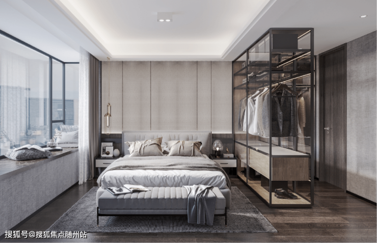 约39㎡的行政主卧套房,平衡空间规划,自由分割成独立衣帽间并配备双洗手台、浴缸等盥洗室,提升空间私密性与舒适感。