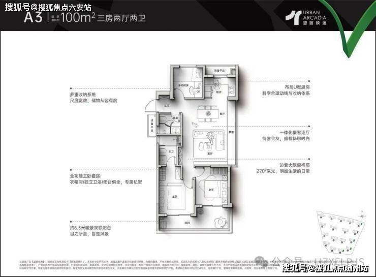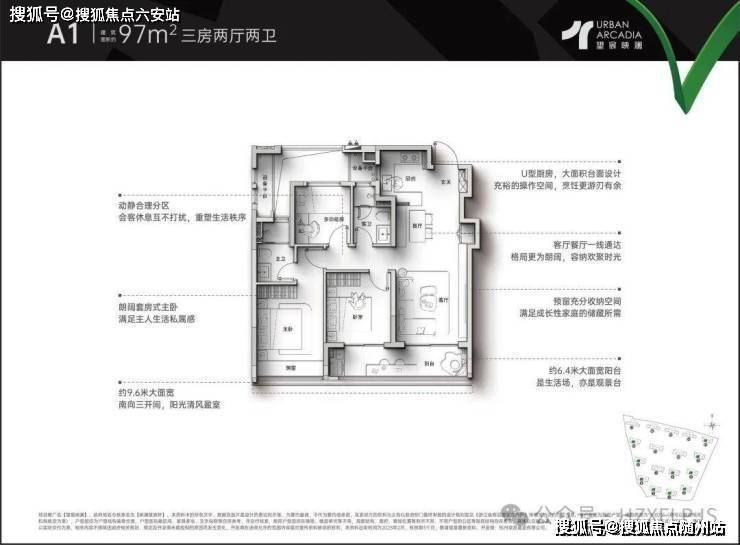 考究到像素级的户型设计,又进一步放大了它的质价比。首开的建面约97㎡的三房两卫,玄关设计了S墙(可以放冰箱),厨房做了3折叠玻璃门+岛台。