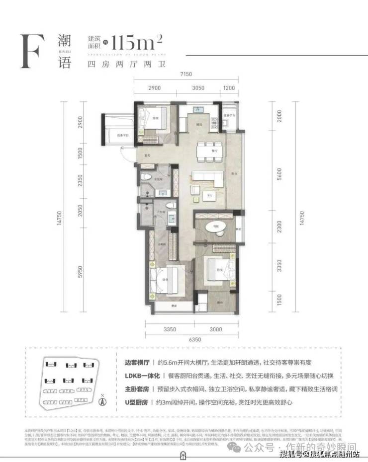 以建面约115㎡边套四房为例,约5.6米开间大横厅,LDKB的一体化设计让家庭社交更加自在;主卧预留步入式衣帽间与独立卫浴,私密生活从容有度;成长型百变四房可设置储物间、瑜伽室或临时客房等,从二人世界到三代同堂,空间始终与家庭成长同频,成为无数新生代家庭的“至优解”。