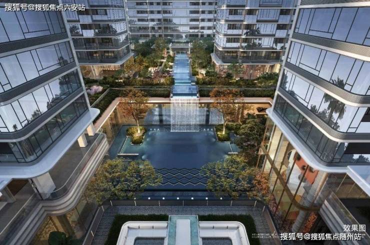 再看约1200方下沉庭院,叠水成瀑,区别于市面上大部分楼盘的“坑洞感”,形成上下两个平行空间的双层滨水度假系统,一看就很赞。