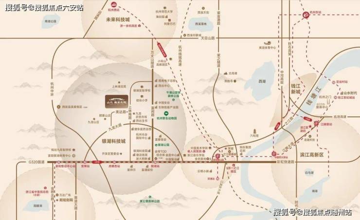 不难看出,山水颐萃别院用满满细节和真金白银,在竖立一个板块新标杆。山水颐萃别院的标杆潜质,源于优秀的地理占位。项目位于银湖科技城融杭门户,抢占交通资源高地,约1500米连接杭州地铁6号线虎啸杏站,瞬达杭州主城核芯。毗邻G320国道与彩虹快速路西延段,形成快速融杭交通走廊。