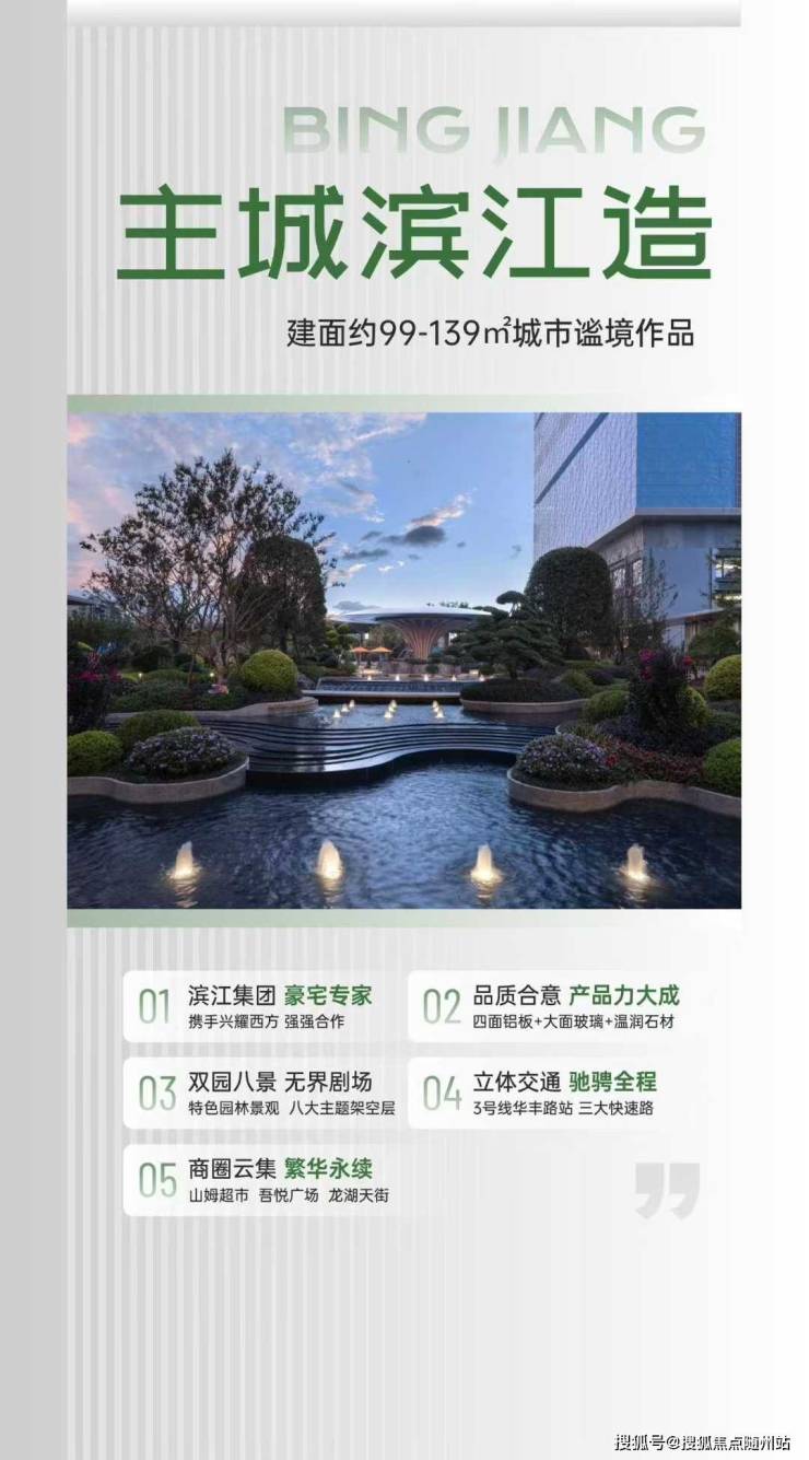 高端产品:滨江造·架空层+景观水系+封包阳台+四面铝板等,打造「滨江的精选」标杆