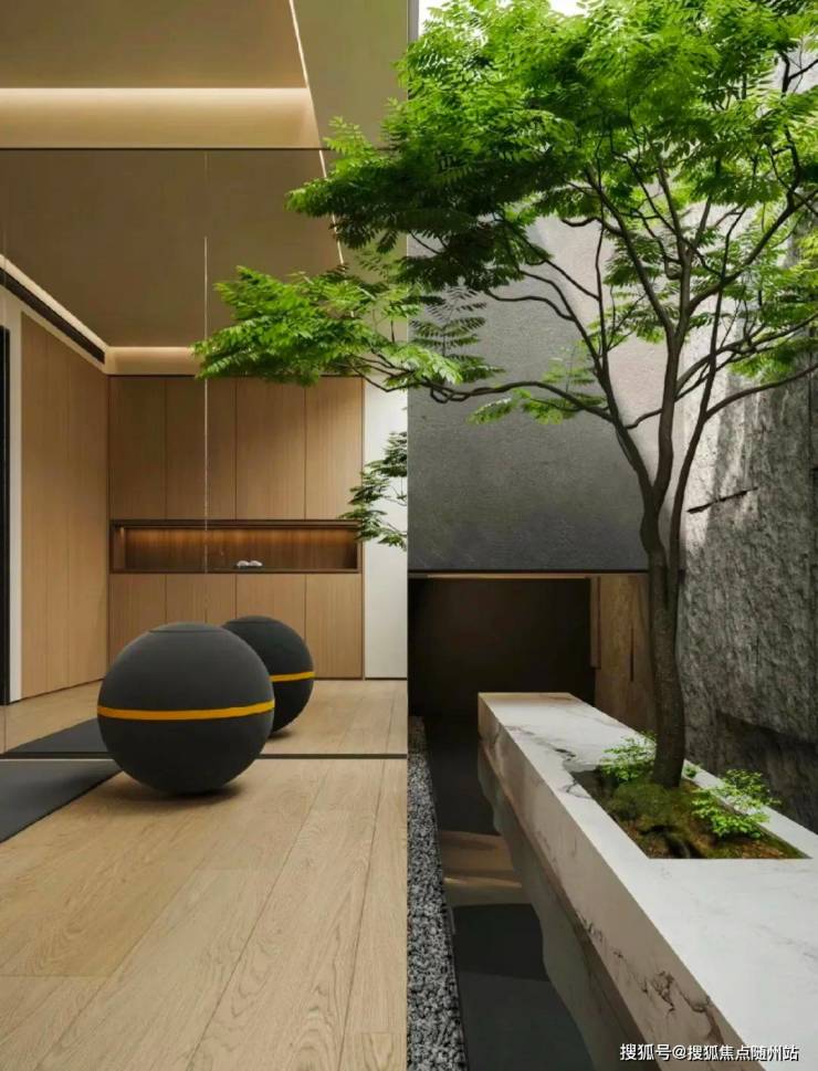 在设计师巧妙运作之下,24 席院落被诗意与绿意层层包裹起来。由东方园林提炼而来的造“静”八法, 将“一园一苑两街四巷 24 院”与“三进三出”的东方礼仪有序铺陈。