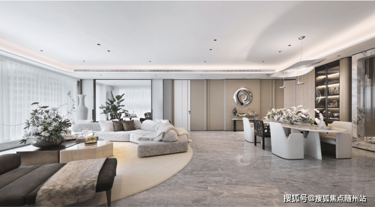 围合式布局打破了传统大平层“孤立建筑”的冰冷感,不仅是物理空间的围合,更是将度假的惬意、社交的温度与静谧的纯粹深度融合,由此构筑起私密性与尊崇感兼备的生活场域。