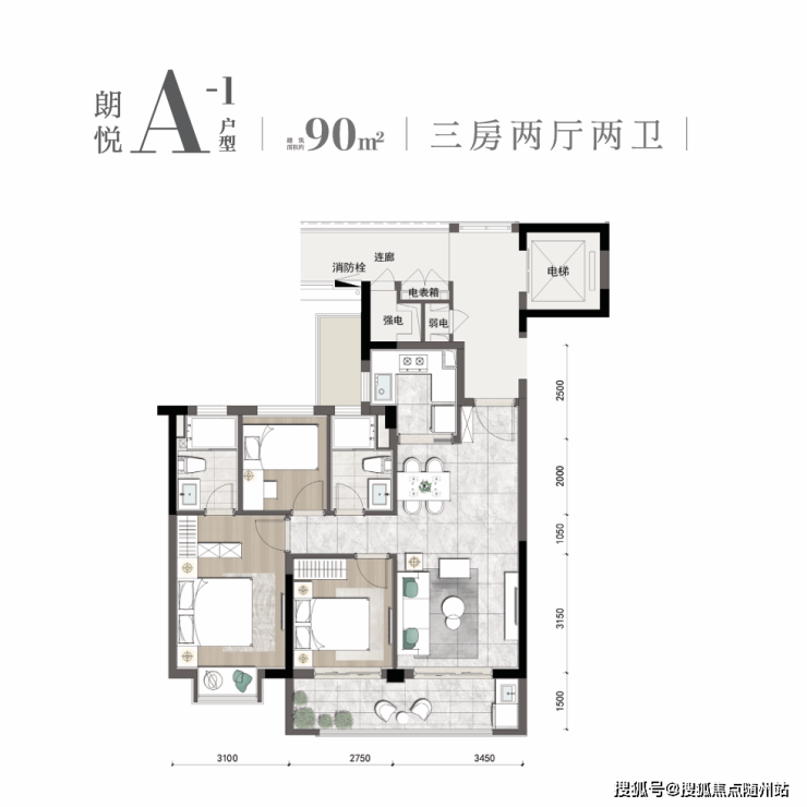 当然,其他的户型也是彩蛋满满,其中很受欢迎的建面约90㎡小户型,宽阔客厅、双阳台、双卫、主卧大套间设计,非常实用,过目难忘。