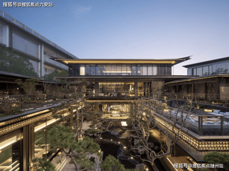 掇山理水,悬瀑于亭下,景桥横卧于前,叠水层层而下,在有限的下沉庭院空间内营造丰富立体层次。将生活的栖居场所与园中山水无限贴近,临溪而坐,俯仰天地,听流水漏潺,所有的疲惫与喧嚣都随着流水远去了。