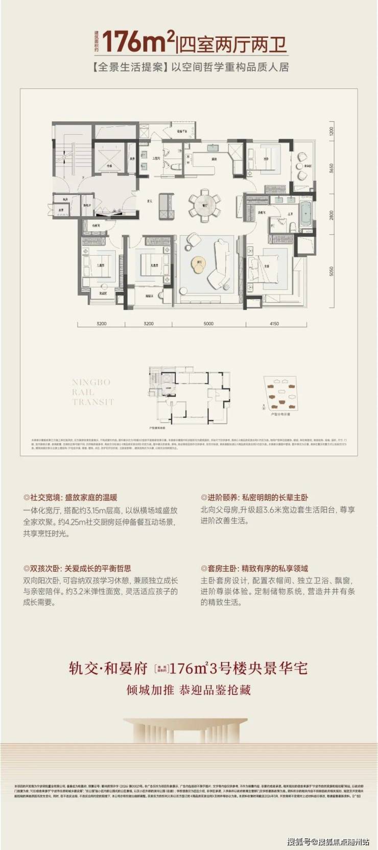 轨交和晏府3号楼当红央景大宅 建面约176㎡LDKG一体化方厅+270°主卧套房 全龄改善场域热销