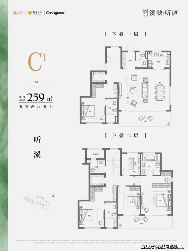 溪映听庐规划建面约200-260㎡的纯正精装改善上下叠,上叠带摘星与观山大露台,下叠带地下室坐享园林小景,同时,大面玻璃的立面设计,最大化的景观视野,万亩茶园化为窗外的胜景。置身室内,望群山绵延、茶田纵横,大地的屋脊与山川的脉络就是造物主最好的天际线,而溪映听庐的业主,就是大山的主人。