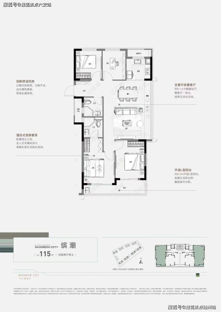 约115㎡/130㎡户型:多为边套设计,视野开阔,部分户型拥有南北双阳台,改善属性更强 。
