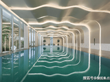 鸣澜里由6幢高层住宅组成,容积率大约在2.7区间,绿化覆盖比例较高,社区景观以泳池、下沉庭院和室内会所为核心,配置了台球室、影音室、瑜伽区等多种公共空间。