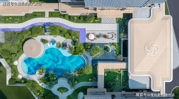 在情绪价值至上的时代,鸣澜里的景观园林也充满了疗愈感。异形的中央水景,悬浮的岛台,充满热带气息的棕榈植物,度假的场景和轻松的氛围十足。对于工作繁忙、生活需要放松的都市年轻人而言,下楼就是旅行、归家就是度假的生活场景,才是家和工作之外最好的第三空间。