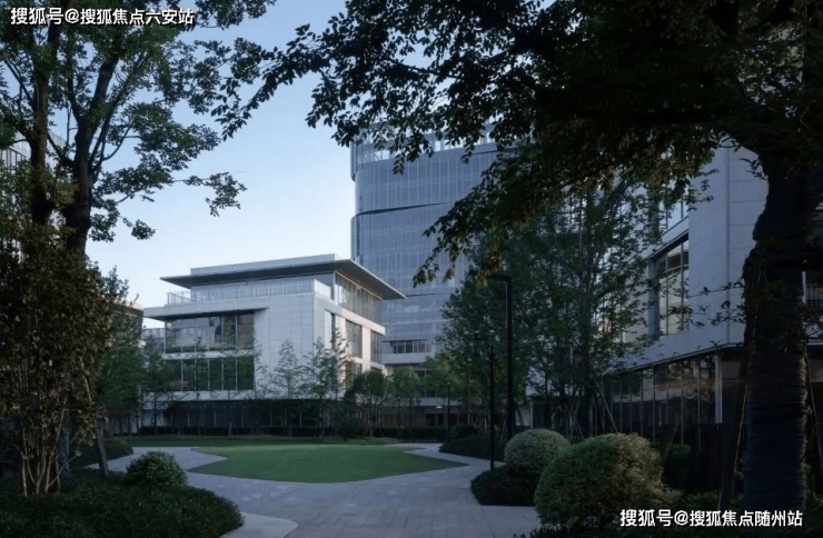 建筑之间通过精心设计的组团庭院连接,形成半围合的静谧空间,种植多层次绿化,为企业员工提供就近的休憩场所。
