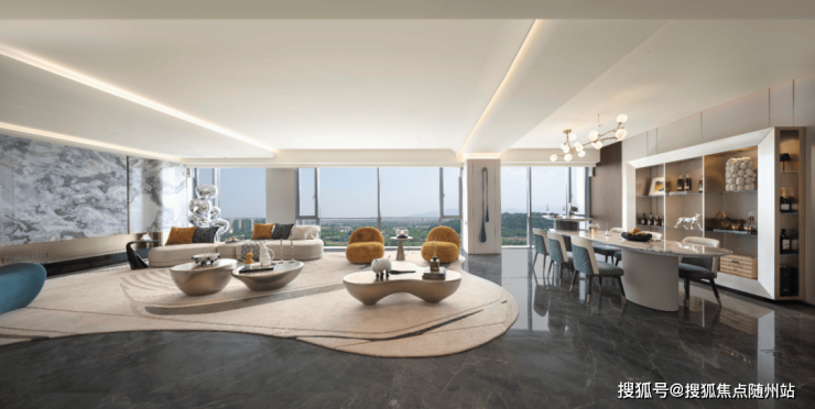 项目采用原生300㎡户型结构体系,在空间功能布局层面实现精准化设计:南向配置约100㎡开放式社交厅及50㎡主卧套间系统,依托三面采光布局形成270°全景视野界面。其中核心会客区配置9.6米连续观景面,结合双层low-E玻璃幕墙系统,实现建筑与自然的无界对话。