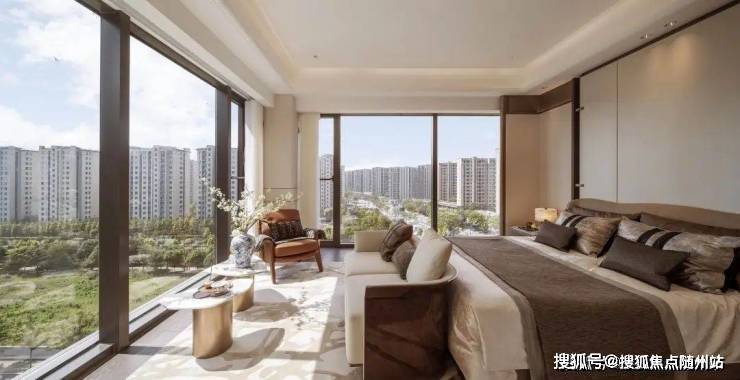 总统式主卧套房空间面积高达约52㎡,配备全景步入式衣帽室+收纳空间+酒店式三分离卫生间,搭配联合国际大师的高定专属生活方案,相当于把安缦酒店的行政套房搬到家里。