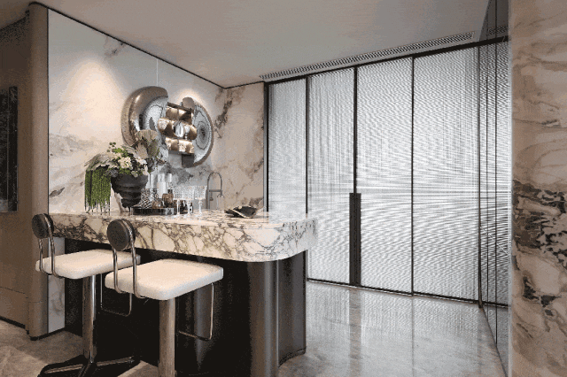 最后是精奢于心的优雅空间,例如由琚宾设计的杭州首个宋韵作品「SONG370」,提取经典名画《西湖全景图》中的丹青意蕴,运用风景开阖、空间对比等传统设计手法,从青玉横幅背景墙到金缕编织墙面,从自然奢石到苔藓微山水,千百次挑选材质和精工打磨,为杭州带来一处奥体之上的江南庭院。
