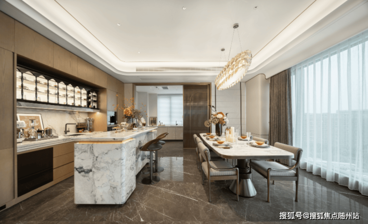 以“海派东方”风格设计的建面约322㎡摩登户型中,中西双厨的巧妙布局,是生活仪式的完美起点。 西厨区一座360°环形复合功能岛台,不仅是料理的操作中心,更成为家庭的社交枢纽。清晨的咖啡、午后的甜点、晚间的轻食,皆可在此从容完成。