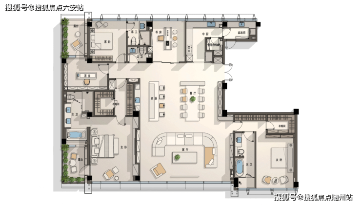 标准层也带南北双露台,约8.6m面宽的大方厅,居住舒适度明显高于一般的高层大平层。