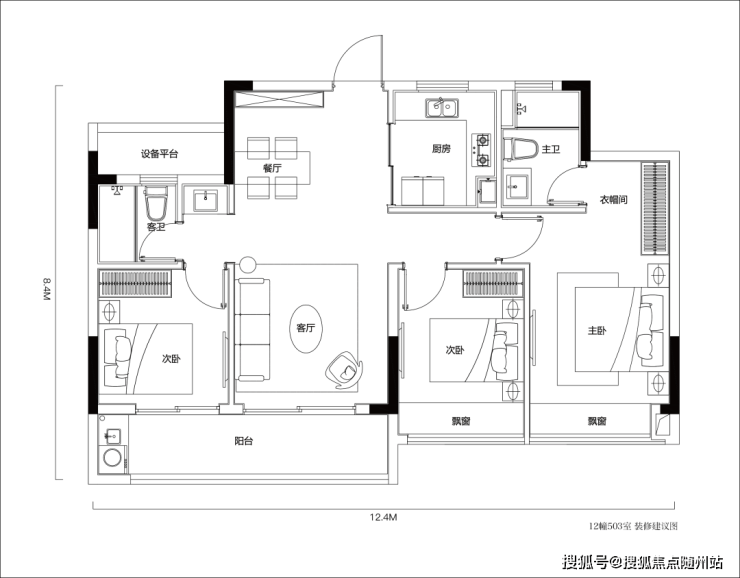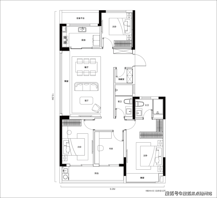 约100㎡户型点评:三房两厅两卫,南向四开间阳光户型,完整功能大三房 双飘窗,南向双开间 大阳台套房式主卧 全明双卫;