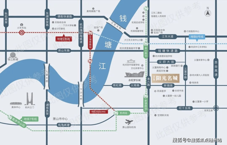 滨江阳光名城位于大江东核心十字轴位置,地处钱塘中轴线上。这里,交通便捷,地理位置优越,是连接主城与萧山国际机场的重要节点。项目周边,地铁、快速路交织,构成了四通八达的交通网络。