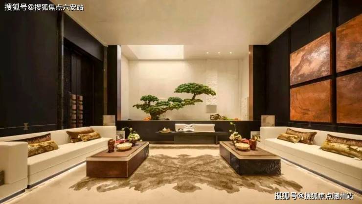 入户门厅采用引园入院的设计手法,门前水流透过景墙、两侧相迎的黑松以及铜元素入户大门的细节处理,让归家之路充满尊贵仪式感。这种设计不仅体现了中国传统建筑文化的精髓,也满足了现代人对品质生活的追求。