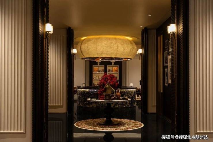 柱廊的尽头,是雅致而奢华的接待厅,再进一道门,才是楼盘大堂。这样重重进门的归家动线,是在无声处带来仪式感。
