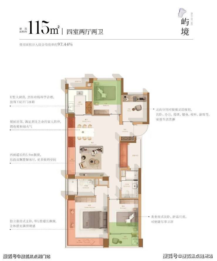 这一有着约97.44%超高得房率的改善四房,带来岛屿的高阶置业之选。类一梯一户设计,将实用性和私密感拉满,妥妥的豪宅级私享体验;超尺度四开间朝南,约15m奢阔面宽,让家中沐阳指数满级;超大的餐客厅一体化,带来惊艳的扩容感和空间体验;主卧亦是岛屿媲美豪宅的270度转角大飘窗设计,坐拥无敌视野。