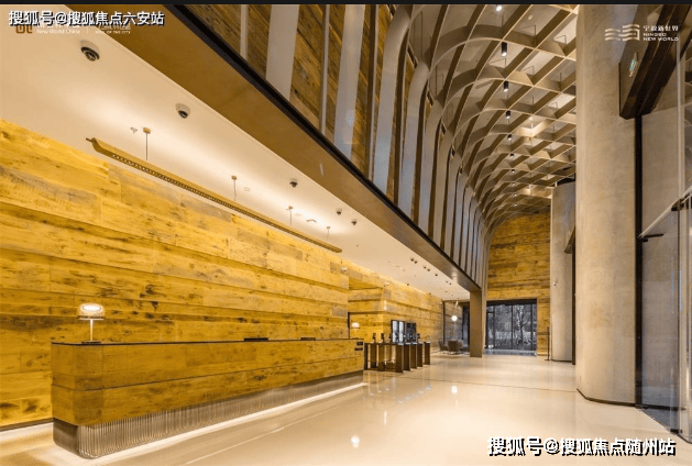 宁波新世界【宁波塔】高达12米双层大堂,室内设计大量采用了温暖的木饰面和颇具造型感的艺术设计。