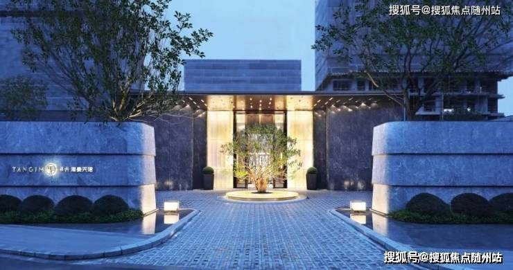 社区主大门采用对称式的八字环抱式盈门,高9米、宽30米,搭配7米超高悬挑雨棚实现酒店式无雨落客,形成壮丽饱满的"名门之仪",给人一种安定丰盈的归家感动。