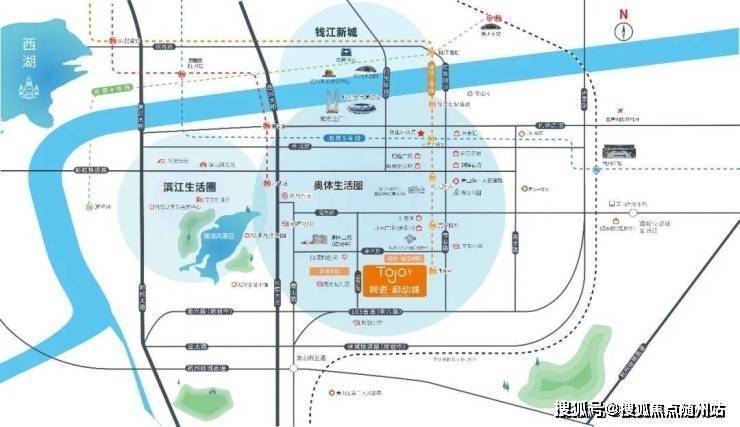 同进韵动城坐落于萧山南部新城CAZ中央活力区,市心南路与通惠南路交汇处,紧邻地铁2号线朝阳站(零距离)作为杭州“拥江发展”战略重点板块,项目占据南部新城发展轴心,毗邻三江创智新城、云栖小镇等千亿级产业集聚区,未来将承接主城人口外溢与新兴产业红利,成为杭州南拓的“价值爆发极”。