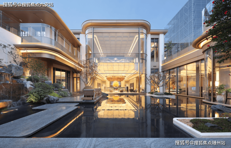 项目的核心亮点在于其“向下探索”的哲学。一个精心打造的下沉式庭院,以镜面水景和数棵百年珍稀古树为核心,成为静谧的社区绿洲与精神场所。这一设计巧妙地为约3200平方米的沉浸式地下会所引入了自然光与景观。下沉会所与酒店会所形成双会所格局,涵盖恒温泳池、私宴厅、健身房等全功能空间,宛如业主共享的“第二客厅”。社区内如同时尚展厅,甄选20种珍稀石材,从入口到室内细节,处处彰显材质之美。