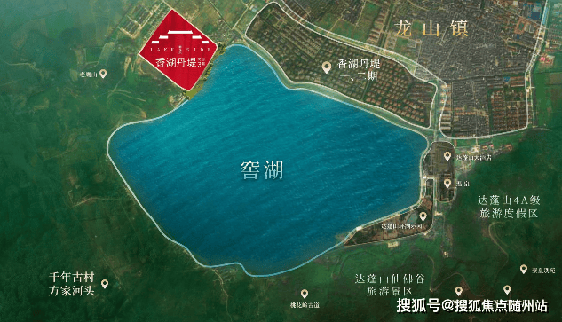 前湖后山:南向直面175 万㎡窖湖(约 9 个月湖大),北靠达蓬山 4A 景区
