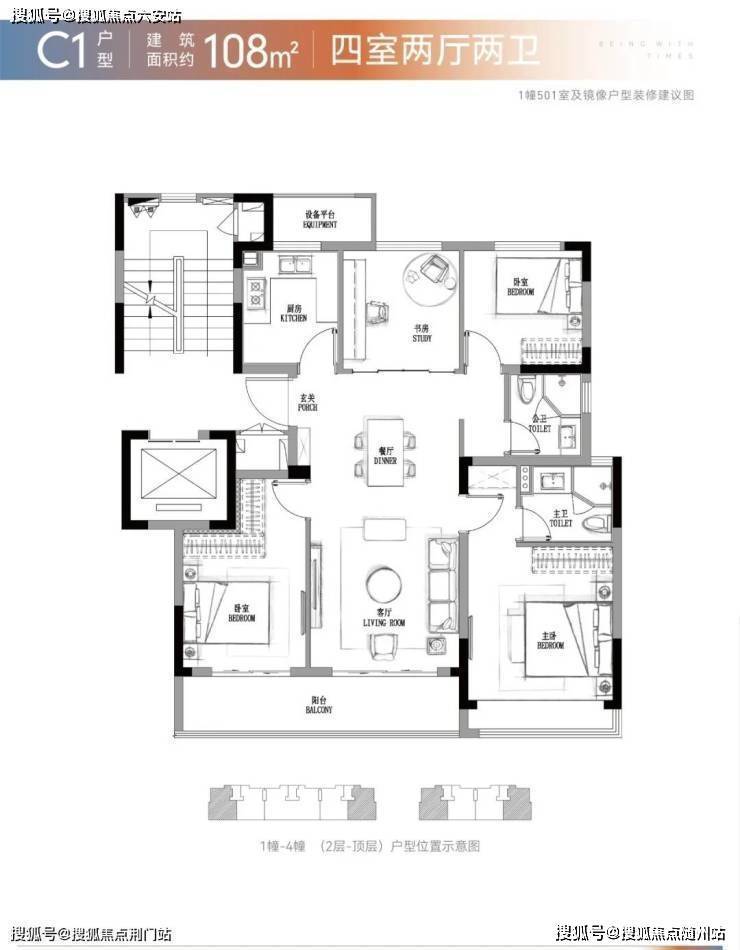 建面约108㎡为四房格局,小高层住宅全部配置珍稀的建面约108㎡宽境四房户型,南向三开间,约10米奢阔面宽,进一步拉伸采光面,约6.5米的阔尺双联阳台,满足生活、瞰景双重需求。同时做到了功能性、舒适性、性价比的完美融合,深受青睐,改善一步到位,不容错过。