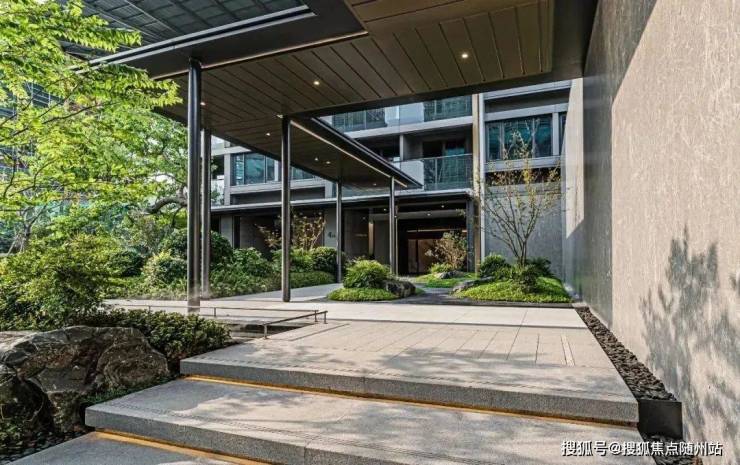 入口处面积约600㎡跌水水景,搭配高星级酒店式的气派入户大堂,架空层、风雨连廊,几近豪宅的标配……
