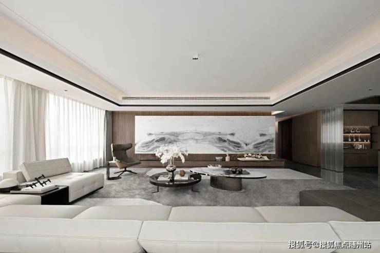 时尚都会在空间中舒展开来,经典款式的minotti沙发进行高定,展现出空间的大气开阔。用当代产品设计的语言去表达传统,营造一个安静舒压的气阔空间。整体空间点缀以英国鬼才设计师Tom Dixon饰品和英国进口品牌LSA的花器提升空间格调。
