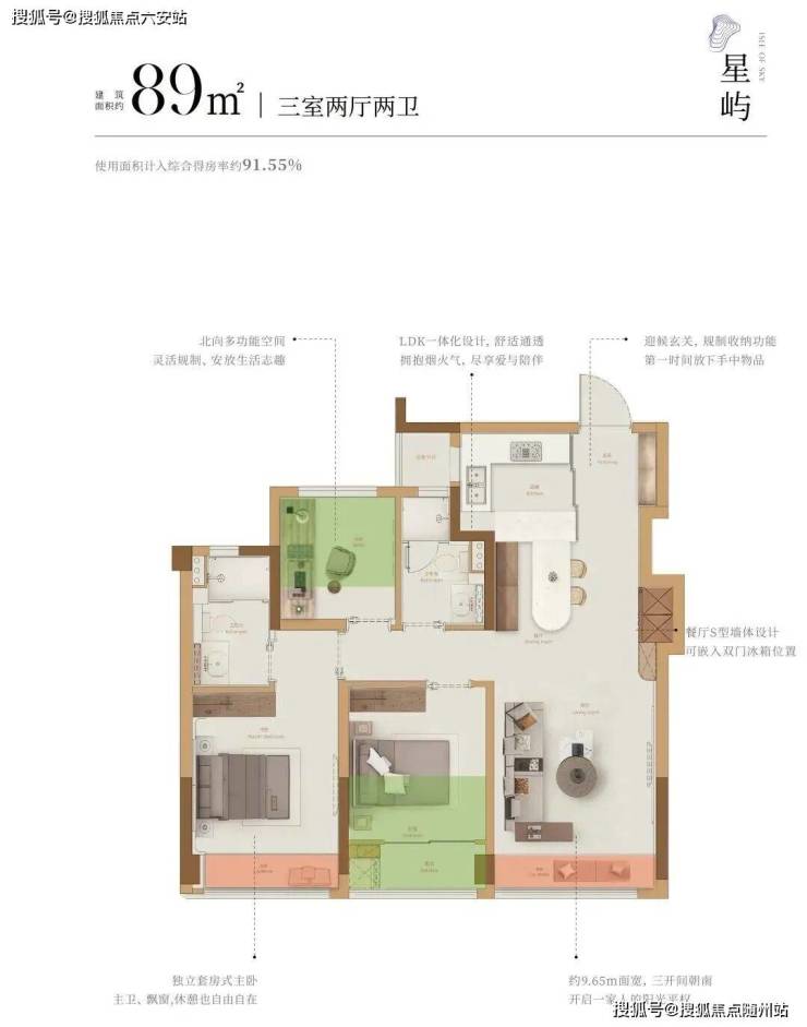 🔥高约100%得房率、迭代升级户型,89㎡-104㎡三房甄选作品115㎡-132㎡四房改善作品🔥