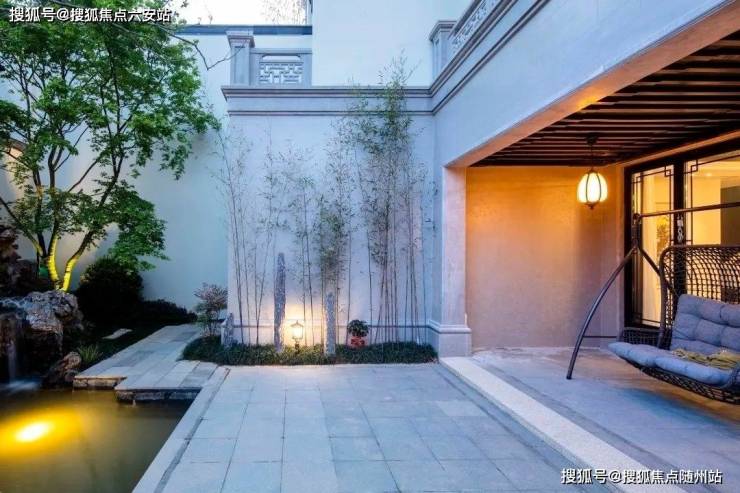 白墙黛瓦,淡雅高洁,苍松翠柏,静守庭院,一如文人风骨,假山造景,石块叠加。倚墙而筑,营造浓郁的中式格调