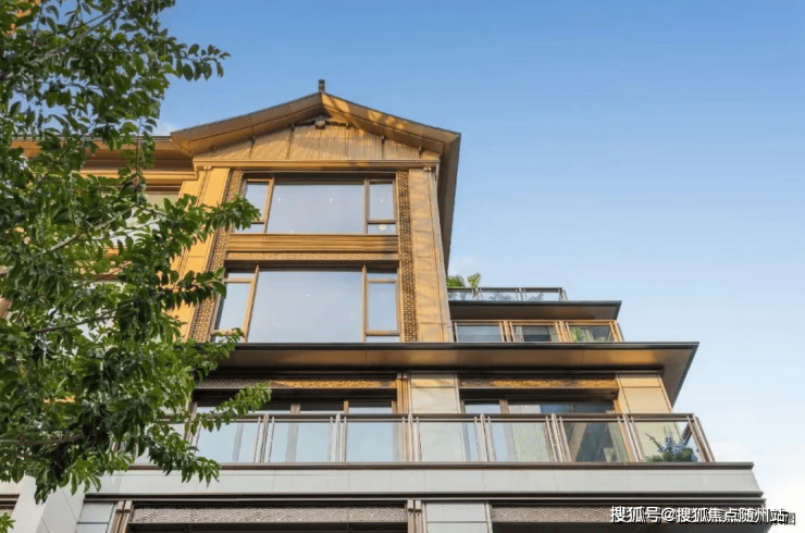 飞鸟屋脊挑檐的高层也自成其景,四面大面铝板+大面宽玻璃,以金线勾边,极具辨识度,如高台楼阁静立园中,进一步升华了宸云的中式禅境。