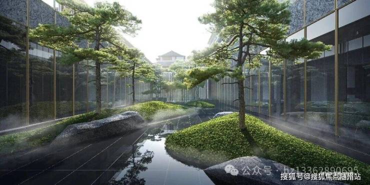 【PART7.景观】构园造境 山水见韵致春棠雅韵府深研宋式造园手法,取意山水画卷,提炼名画中的山峦、流水、飞瀑、水榭、苍竹等元素,结合杭州的人文自然底蕴,运用现代手法营造“画里寻居,诗中筑园”的优雅意境。将城市喧嚣隔绝于外,山水真意糅融于内,传递现代东方韵律。