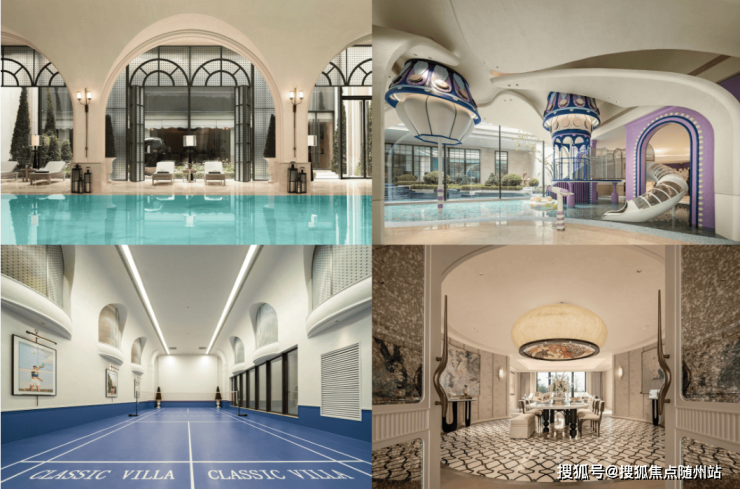 地下会客厅约1500㎡空间内——打造了高达8.2米左右挑空穹顶泳池、杭州住宅园区首个亲子泳池综合体以及可满足羽毛球、匹克球等球类活动的多功能球场。