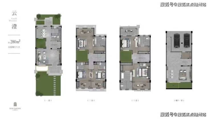 280㎡边套:南向三花园环绕,地下室直通私家车库,主卧套房配观景露台;