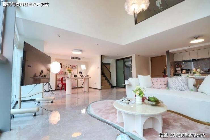 采用客厅、餐厅、厨房、阳台一体化设计(LDKB),减少墙体占用,南向面宽达7.2米,最大化采光与江景视野。空间可适配创意工作室、伴读家庭、直播基地等场景,满足居住、办公、投资多重需求。除双钥匙公寓外,项目同步推出80-95㎡空中跃墅,约5.4米挑空设计可改造为四房。