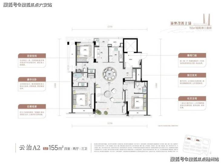 建面约155㎡户型:首先,空间利用率太顶了。双阳台、双飘窗、设备平台、电梯前室全配齐,实际体验感完全不输180㎡的大平层,是真正的小面积大空间典范。其次,归家动线方面,类一梯一户设计、外加宽敞的电梯前厅,直接把尊贵感拉满。